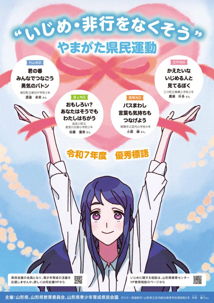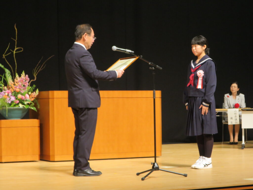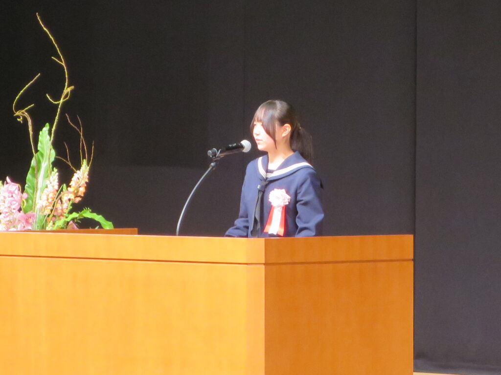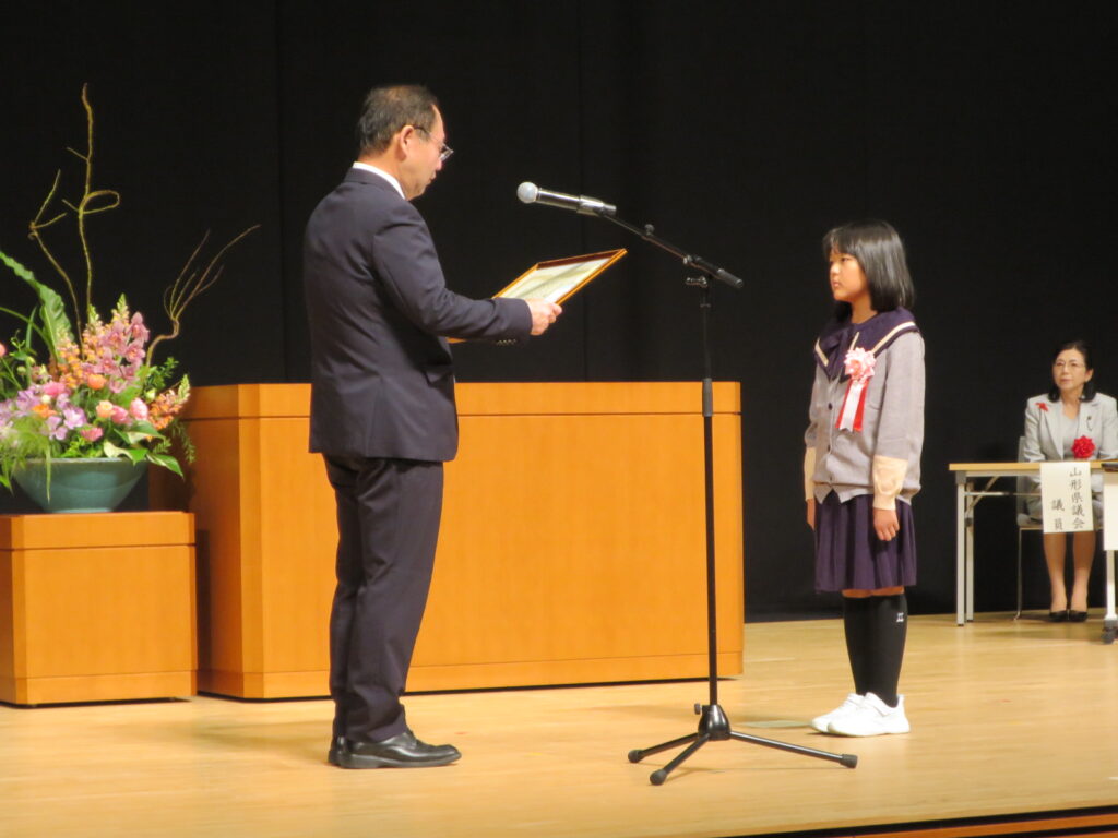 また、式典に続いて開催された「いじめ・非行防止セミナー」では、今年度の山形県少年の主張大会の最優秀賞受賞者の鶴岡市立鶴岡第二中学校 3年 石塚桃心さんに「命の叫びを伝える」という演題で、平和の大切さを伝える人でありたいという熱い思いを語っていただきました。