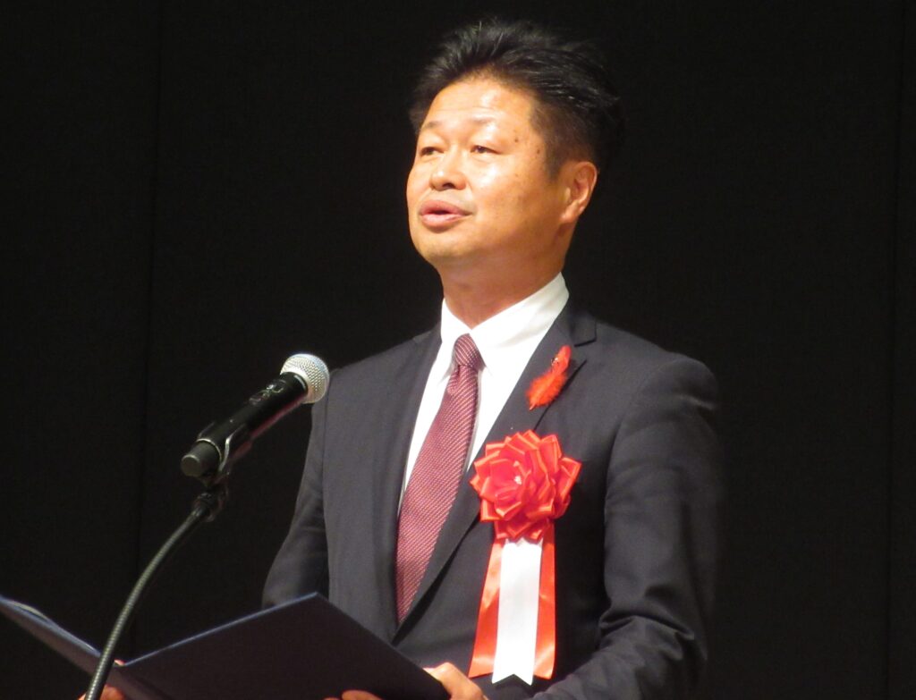 式典では、山形県青少年育成県民会議会長のあいさつに引き続き、開催地の佐藤聡鶴岡市長から歓迎のことばをいただきました。